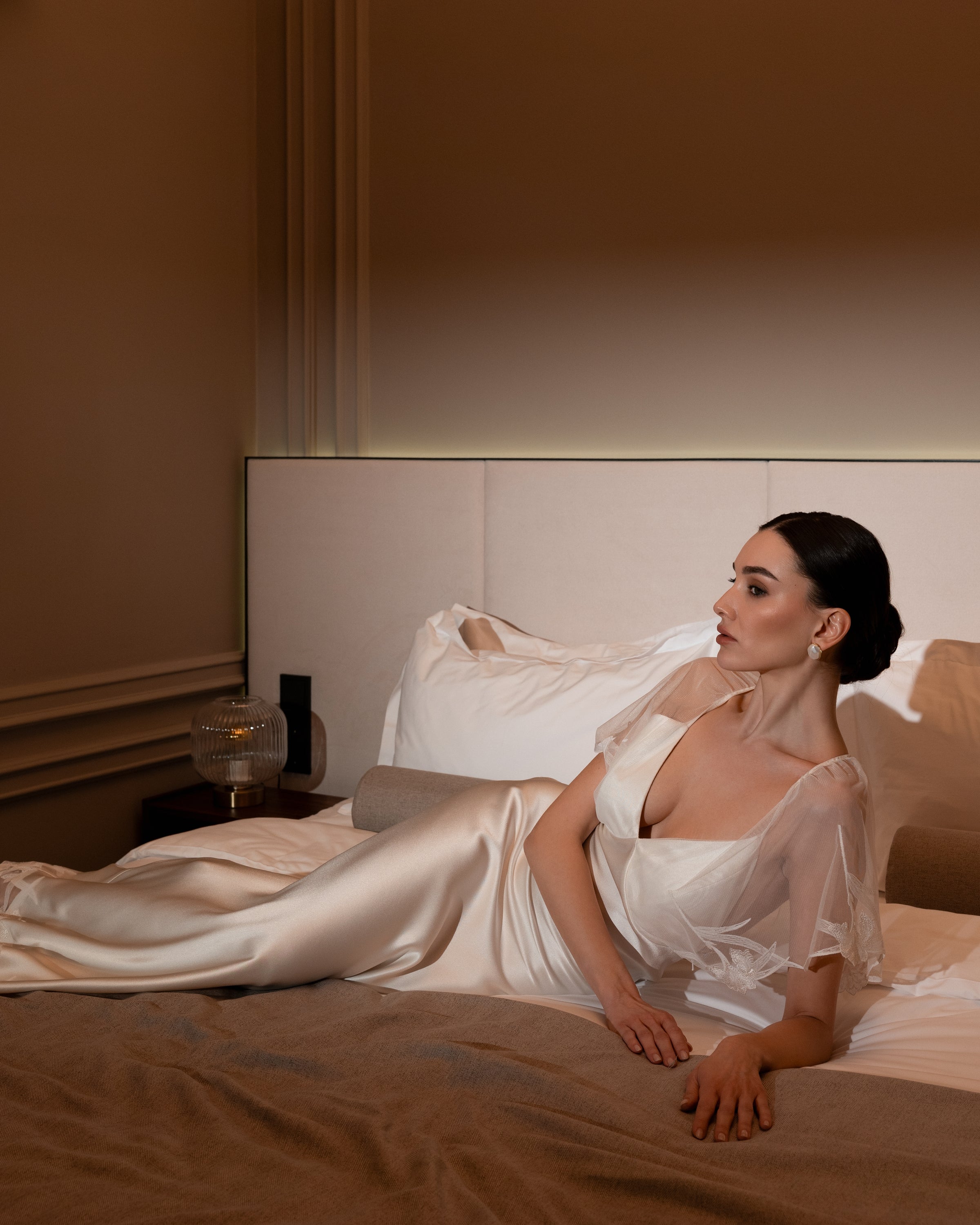 Luxurious long dress finished with premium lace. Suitable for wedding ceremonies, civil weddings, and evening occasions.
