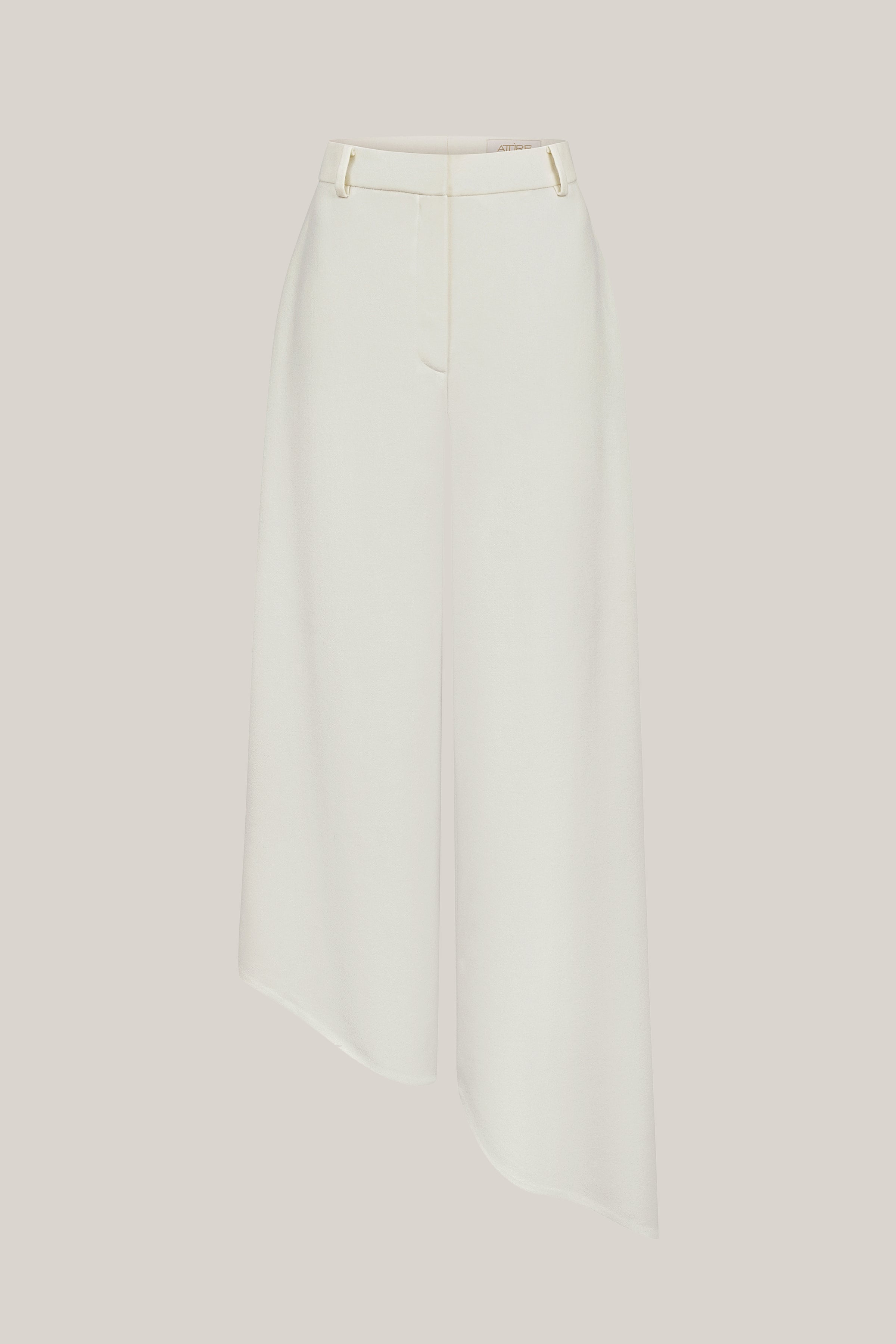 Trousers with an asymmetric hem — a combination of classics and a designer accent. Natural fabric gives comfort and noble texture. The slanted, relaxed cut complements the image in the style of elegant minimalism. The ideal choice for those who appreciate seasonal trends, purity of lines and natural fabrics.