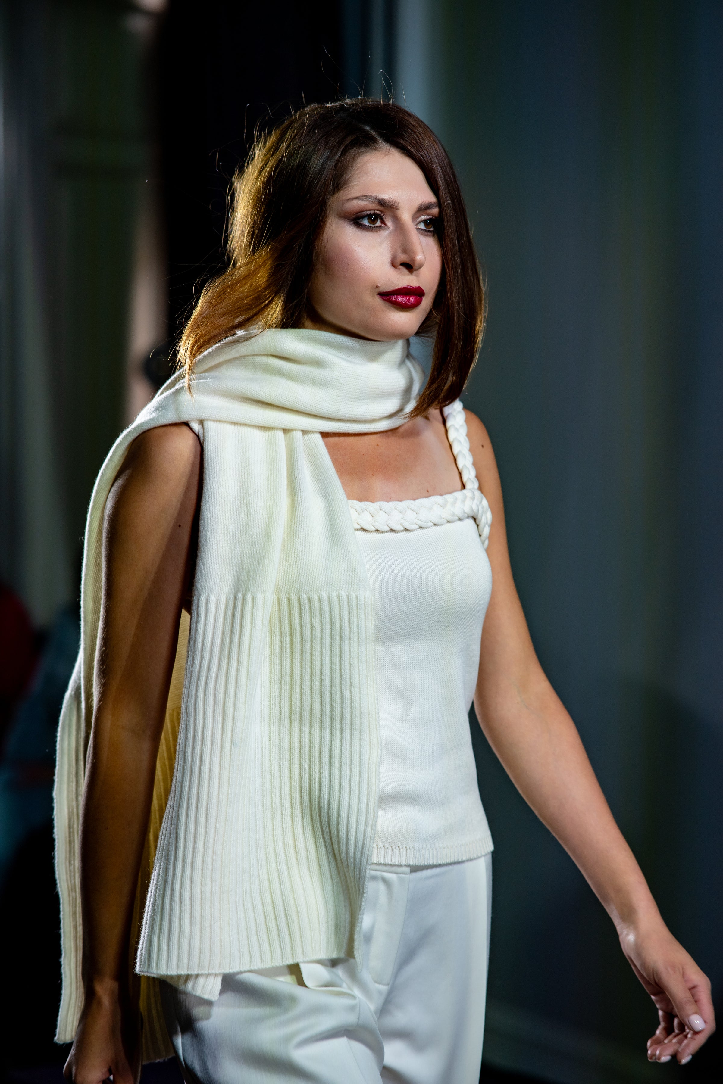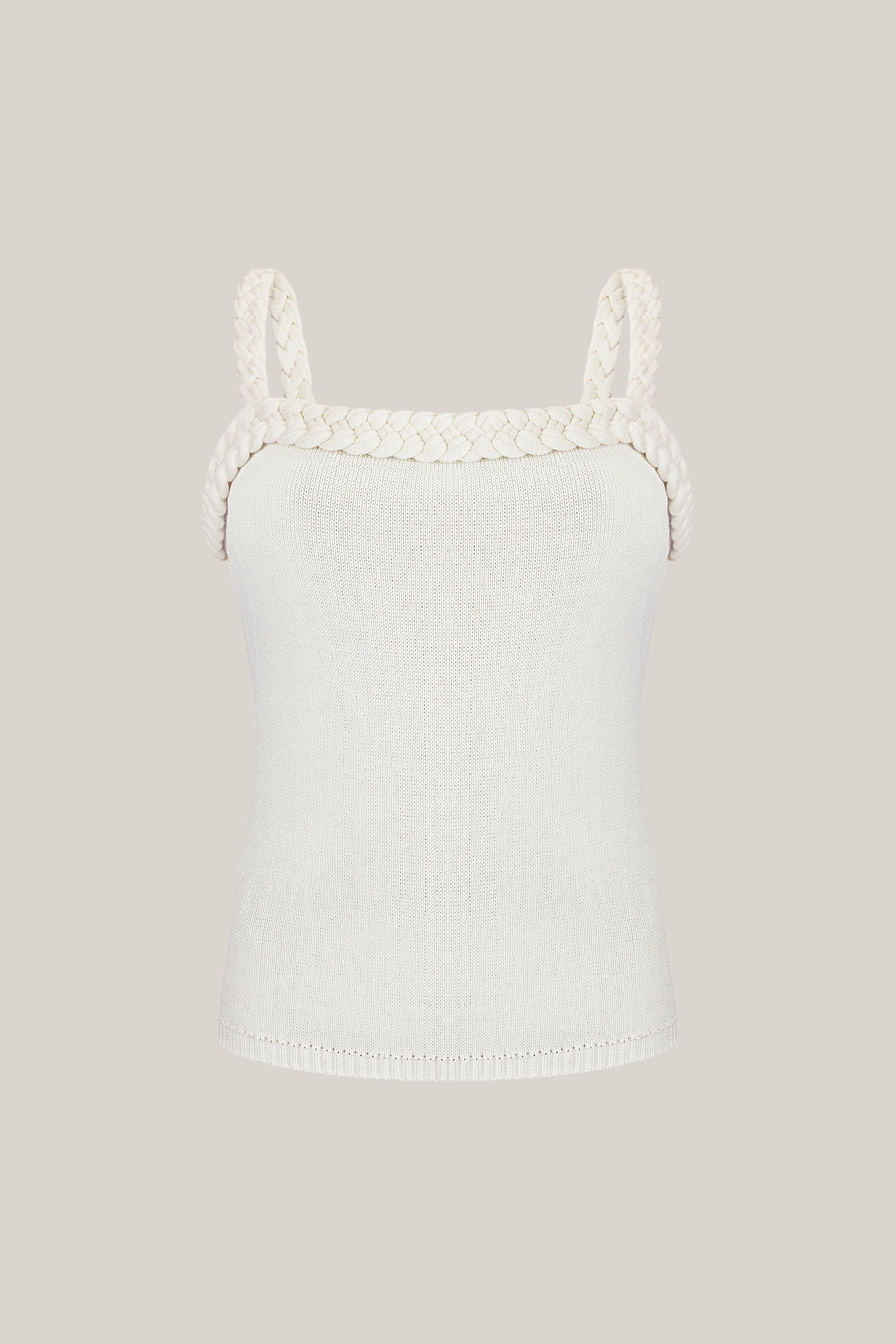 Delicate, minimalistic, and refined — this knitted top combines comfort with sophisticated aesthetics. Crafted from soft natural fabric, it gently embraces the body, offering a feeling of lightness. The highlight is the decorative edge in the form of a voluminous braid, adding texture and a touch of subtle charm to the look.