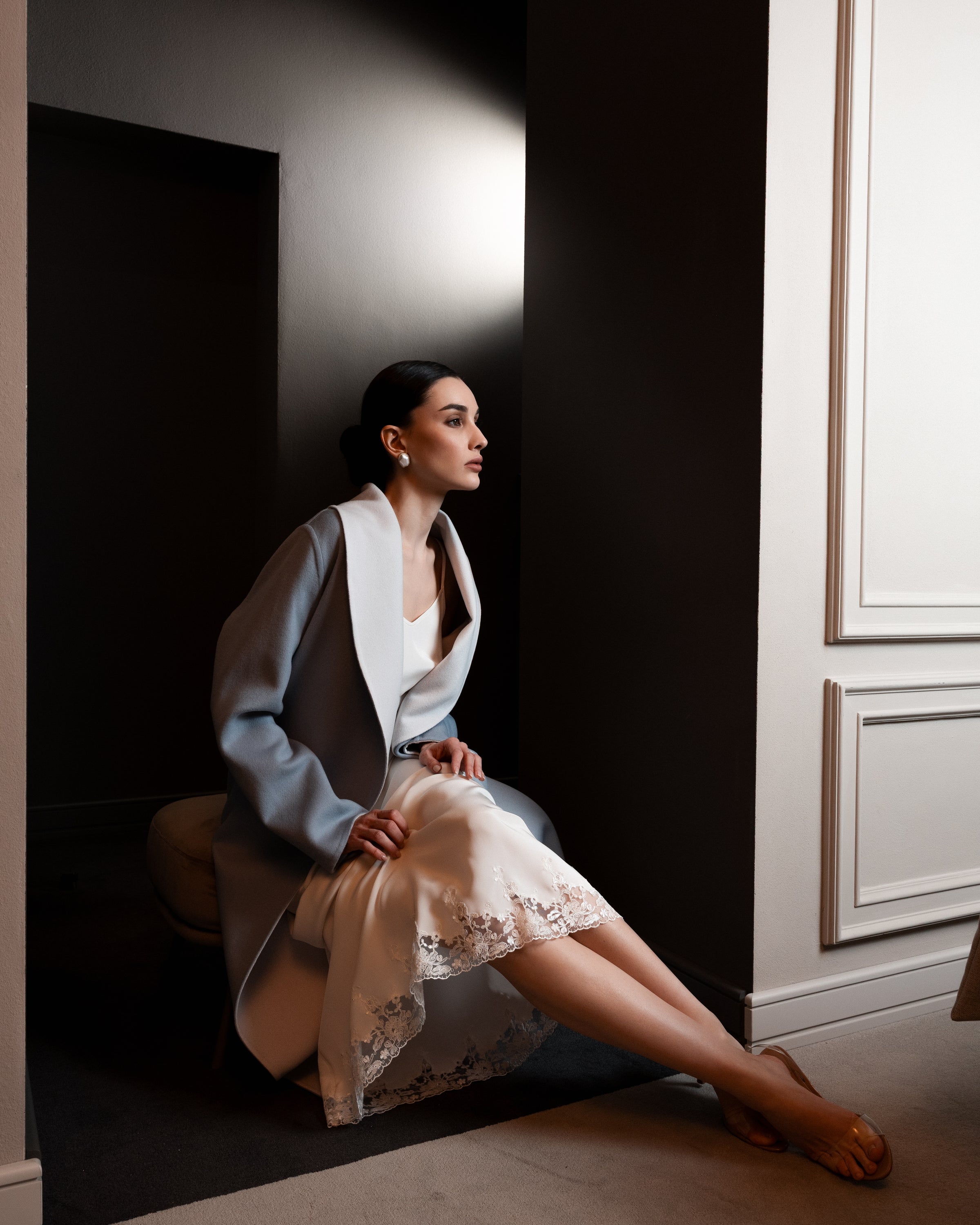 Long silk skirt. The hem is finished with lace. Elasticated waistband. Made from silk. A comfortable, versatile piece that pairs easily with any items from your wardrobe.