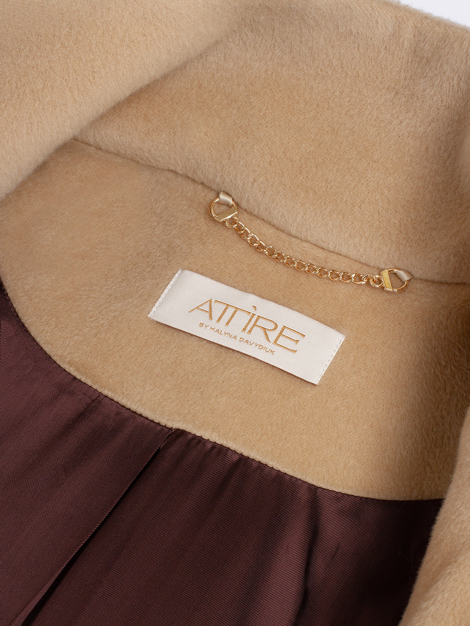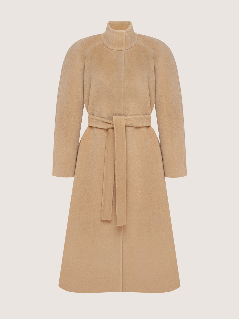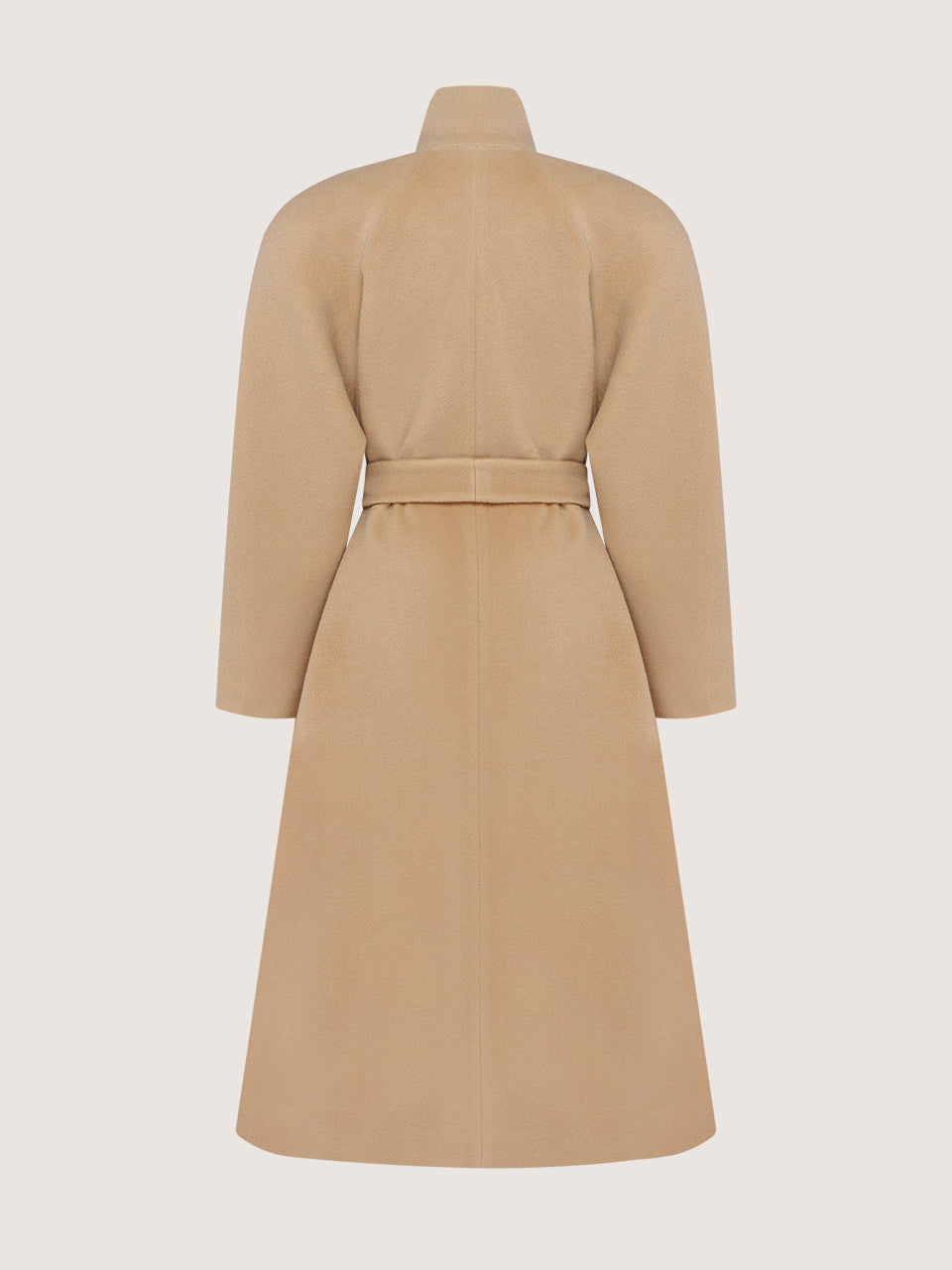 Пальто зі 100% вовни з м'яким коротким ворсом вишуканого бежевого кольору створене для того, щоб підкреслити вашу природну жіночність та витончений силует. Рукави реглан забезпечують свободу рухів та додають образу витонченої м'якості. Акуратний комір-стійка додає нотку благородної структури та сучасного шику. Пояс чудово підкреслює талію, створюючи бездоганно елегантну, збалансовану лінію. Це пальто – інвестиція в тепло, красу та щоденний комфорт у найрозкішнішому вигляді.